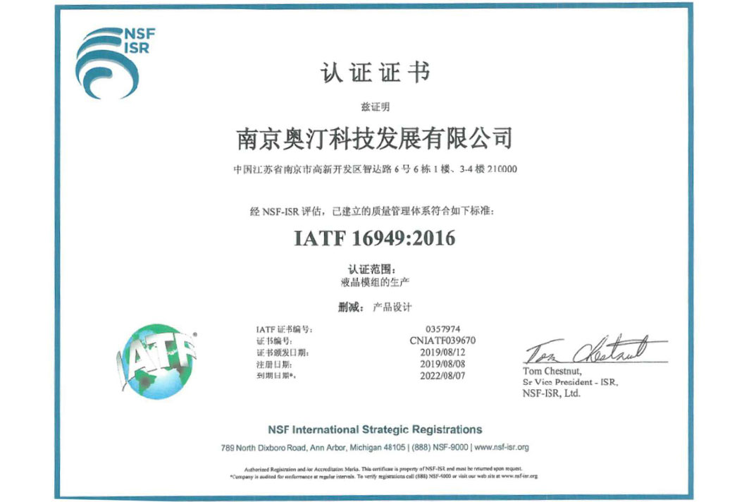 南京奧汀科技發(fā)展有限公司通過QC080000,ISO45001有害物質(zhì)認證 2019年集團銷售額首次突破4億